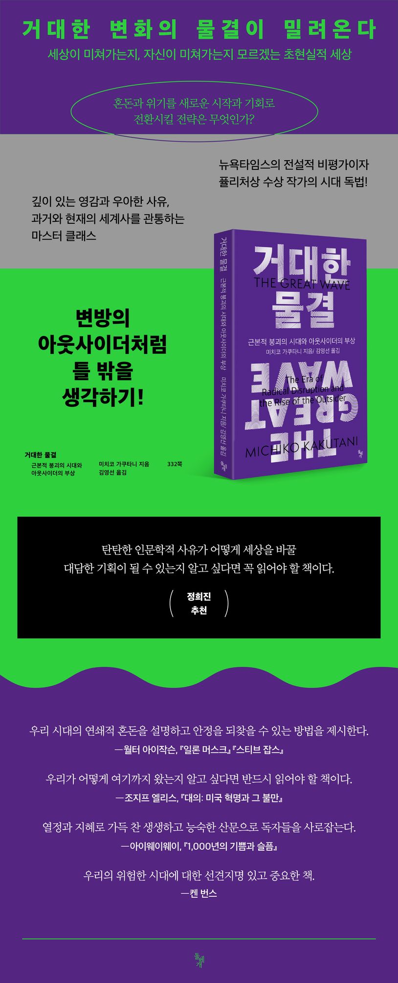 『뉴욕타임스』 수석 서평가로 은퇴한 문학비평가이자 작가인 미치코 가쿠타니가 현재 세계가 직면한 위기와 변화를 그가 구축해온 탄탄한 인문학적 사유를 통해 진단하고 분석한다.