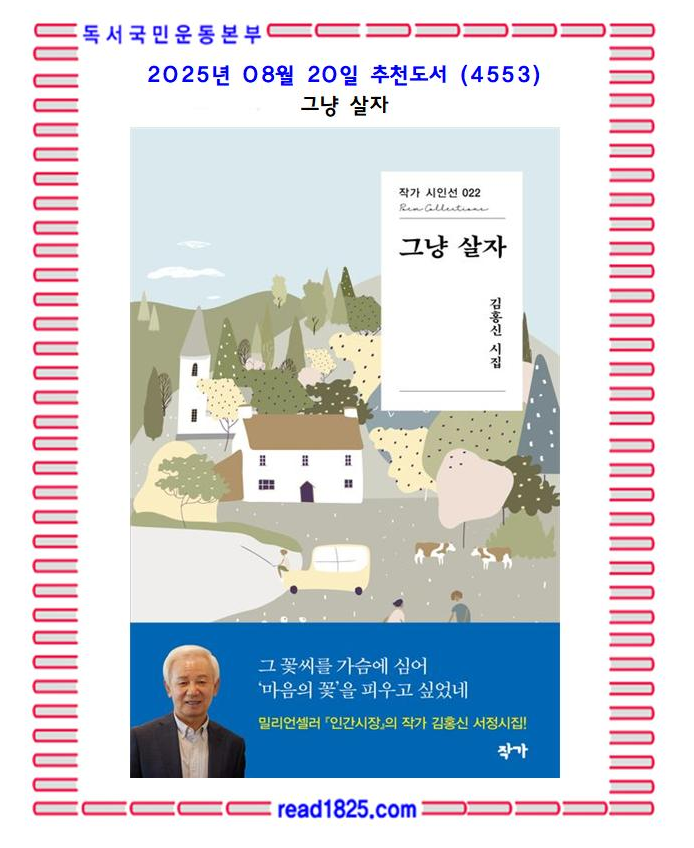 밀리언셀러 『인간시장』의 작가 김홍신이 서정시집 『그냥 살자』를 작가 시인선으로 출간하였다. 이는 이어령과 박경리가 시를 쓰고 시집을 낸 것만큼이나 새롭고 또 놀랍다.