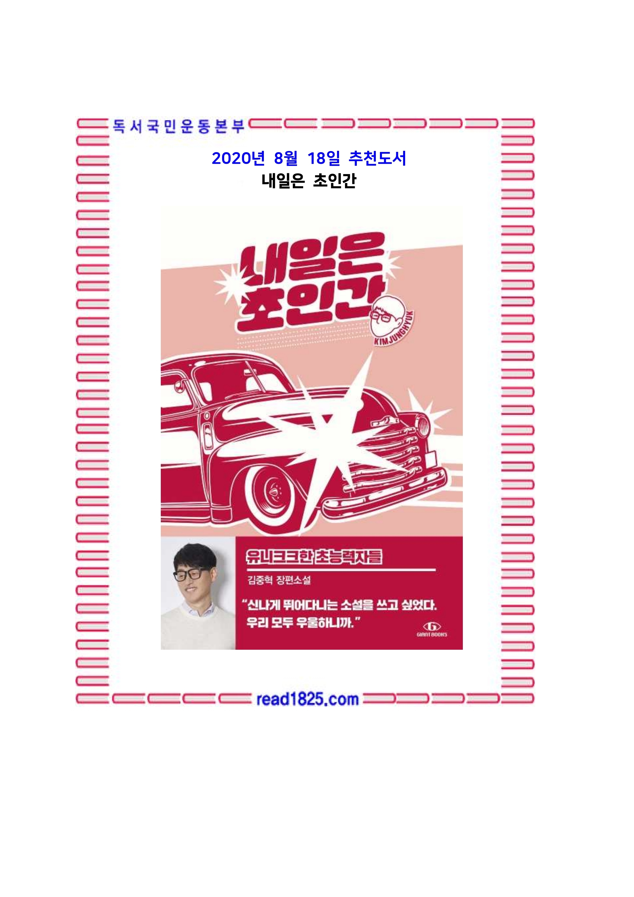 | 8월의 추천도서(2727) 살아있는 동안 꼭 생각해야 할 19가지 (0) | 2020.08.19 |