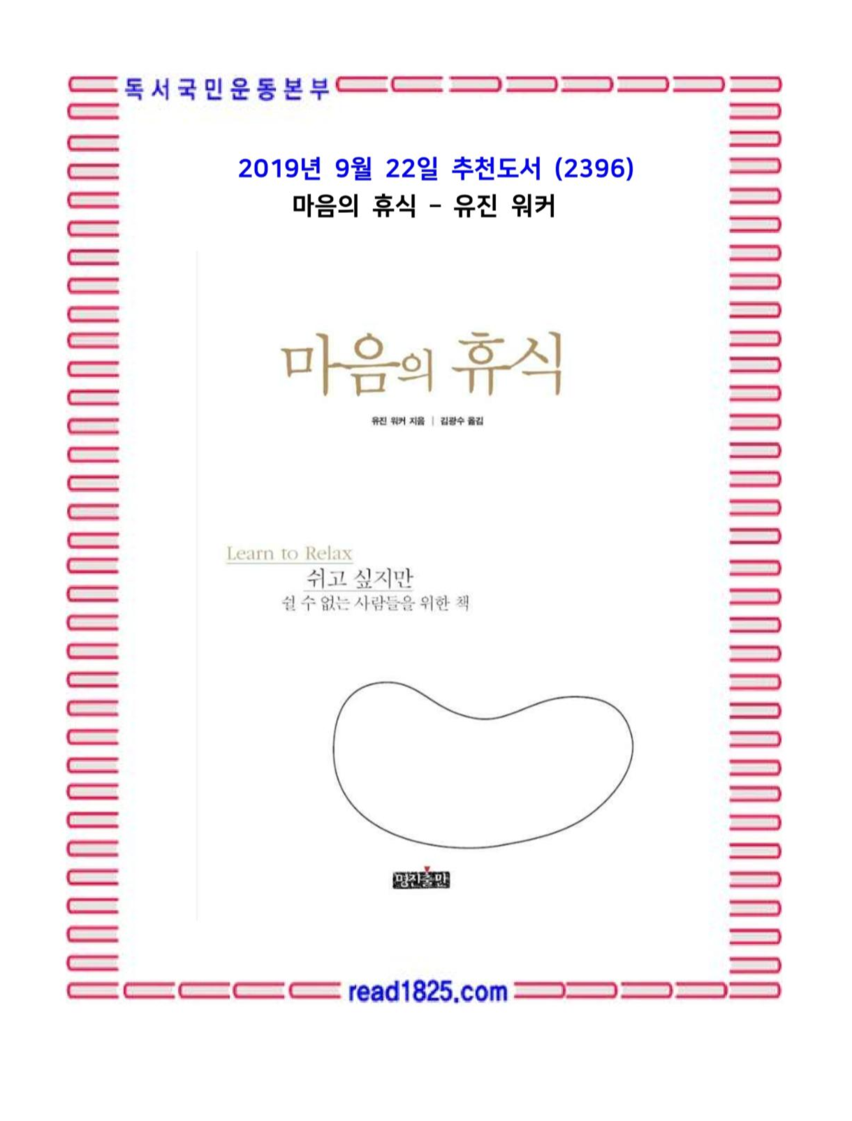 이 책 [마음의 휴식 Learn to Relax]은 미국에서 출간 된 후 늘 바쁘게 쫓기면서 살아가는 전 세계 오피니언 리더들에게 큰 공감과 찬사를 얻어낸 바 있다.