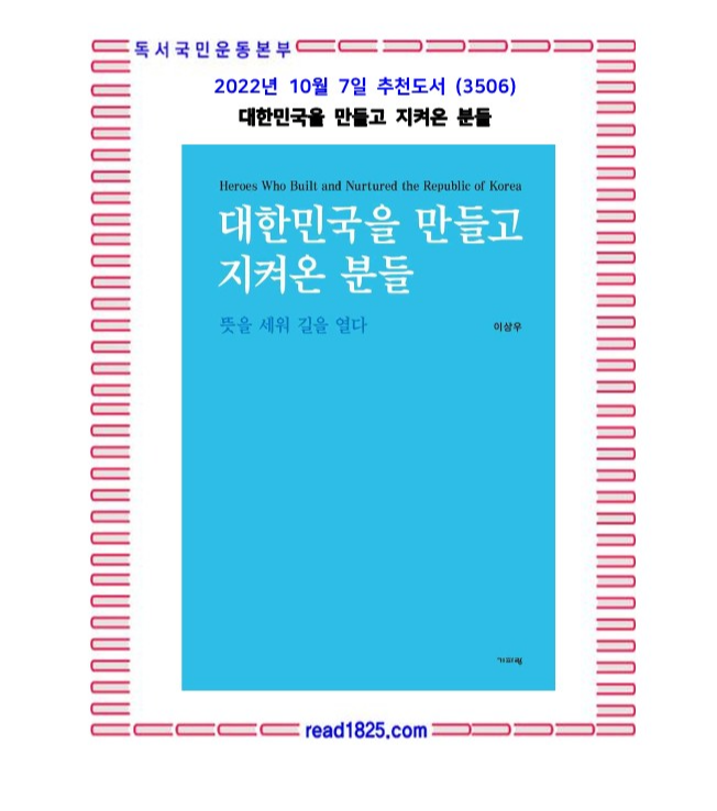 이 책은 1부에서는 국권회복과 대한민국 건국의 기적을 이뤄낸 인물을, 2부는 안정적인 자유민주주의의 정착과 나라를 지켜내기 위해 노력하고 부국의 기초를 닦은 분들의 이야기로 나누었다.