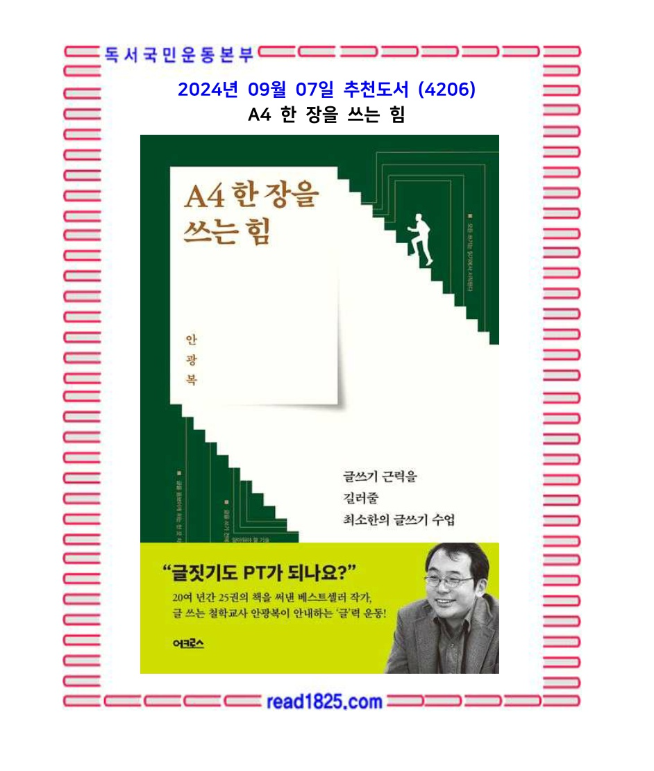 9월의 추천도서 (4206) A4 한 장을 쓰는 힘