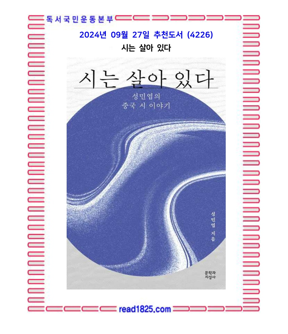 서울대학교 중문과 명예교수이자 문학평론가 성민엽의 『시는 살아 있다-성민엽의 중국 시 이야기』가 문학과지성사에서 출간되었다. 네이버 프리미엄 콘텐츠에 채널 〈성민엽의 문학 이야기〉를 개설하여 2021년 12월부터 꾸준히 다양한 중국의 현대시 작품을 소개하고 있는 저자는 해당 채널에 업로드한 글 중 서른다섯 편을 가려내고 다듬어 이번 책을 구성하였다.