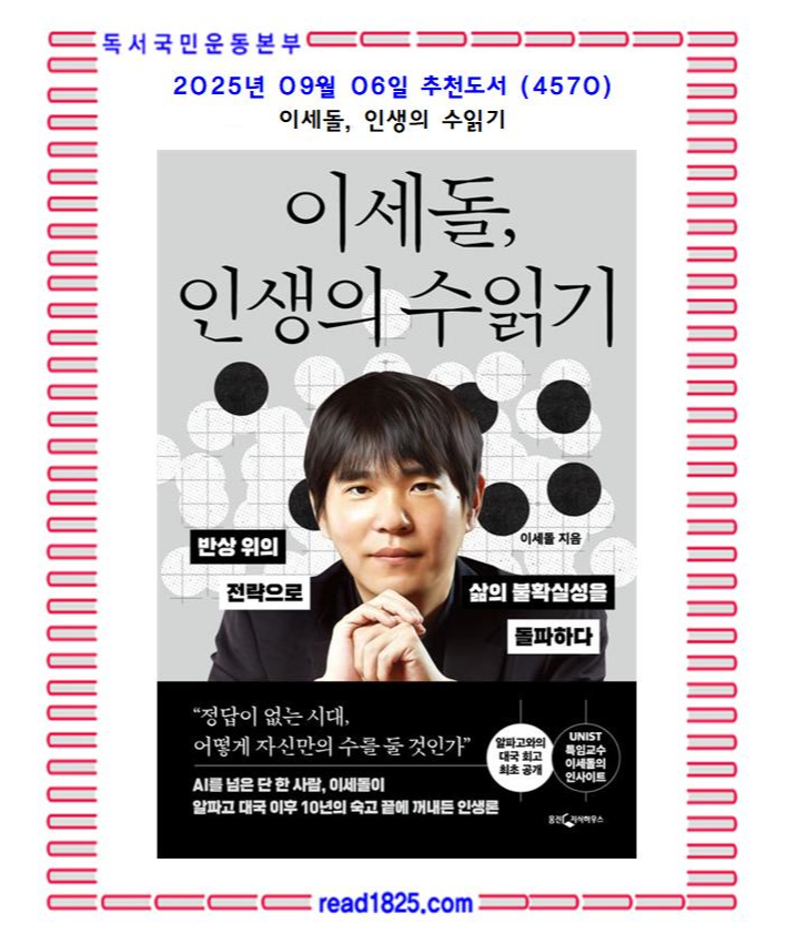 2016년, 인공지능 알파고와의 대결에서 ‘인류 최초 1승’을 거두며 전 세계의 주목을 받은 바둑 기사 이세돌. 대국 이후 3년 뒤 현역 은퇴를 선언한 그가 신간 『이세돌, 인생의 수읽기』로 독자를 찾았다. 이 책은 ‘알파고 쇼크’ 이후 인간만의 고유한 영역은 무엇인지, 예측 불가능한 인생을 어떻게 돌파해야 하는지 10년간 숙고한 끝에 도달한 결론이다.