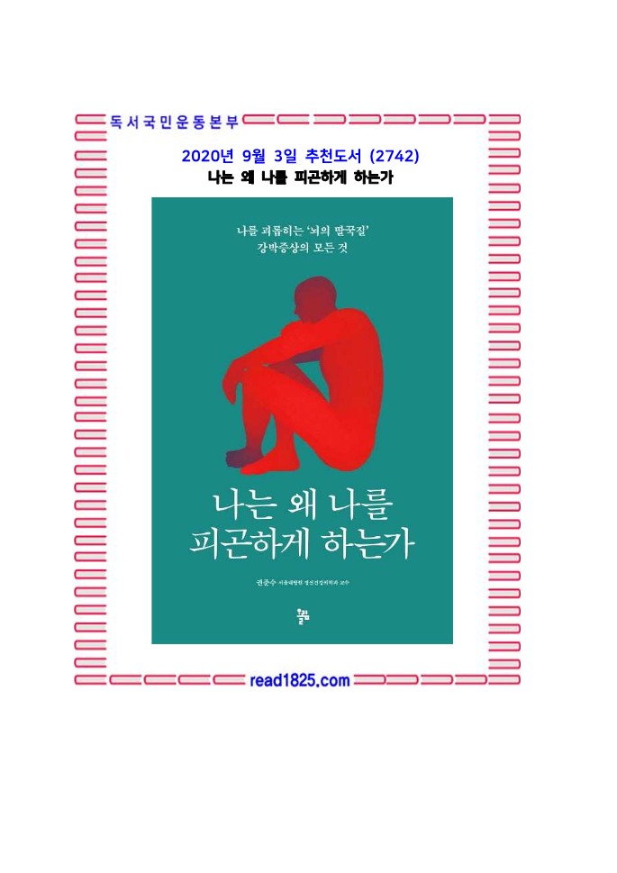 사람은 '누구나, 어느 정도는, 무언가에 대한' 강박관념을 가지고 있다. 그런데 '나'를 피곤하게 하는 것은 '나 자신'인 경우가 많다. '내가 나를 피곤하게 하는 것' 그것이 바로 강박증이다.
