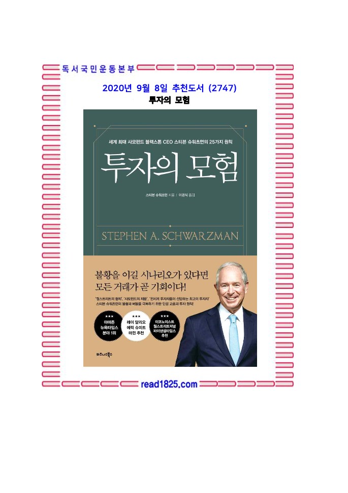 스티븐 슈워츠먼의 불황과 버블을 극복하기 위한 인생 교훈과 투자 원칙!