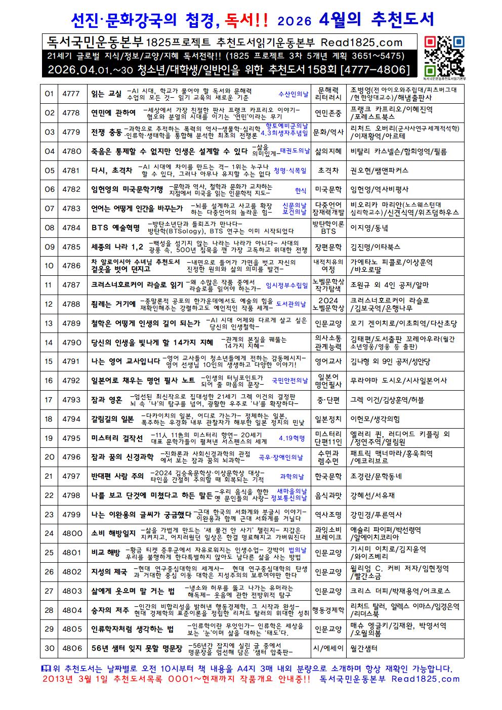 청소년 · 대학생 · 일반인을 위한 추천도서 (158) (2026.04)