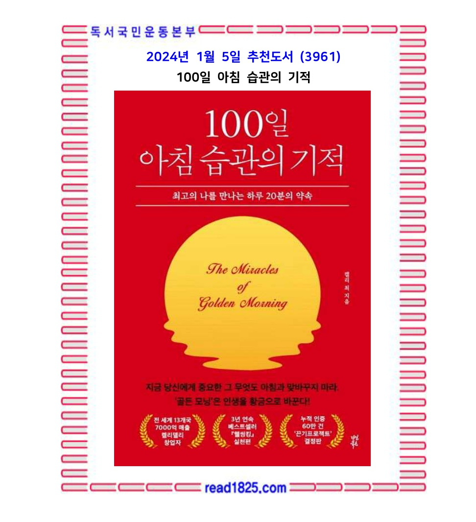 1월의 추천도서 (3961) 100일 아침 습관의 기적