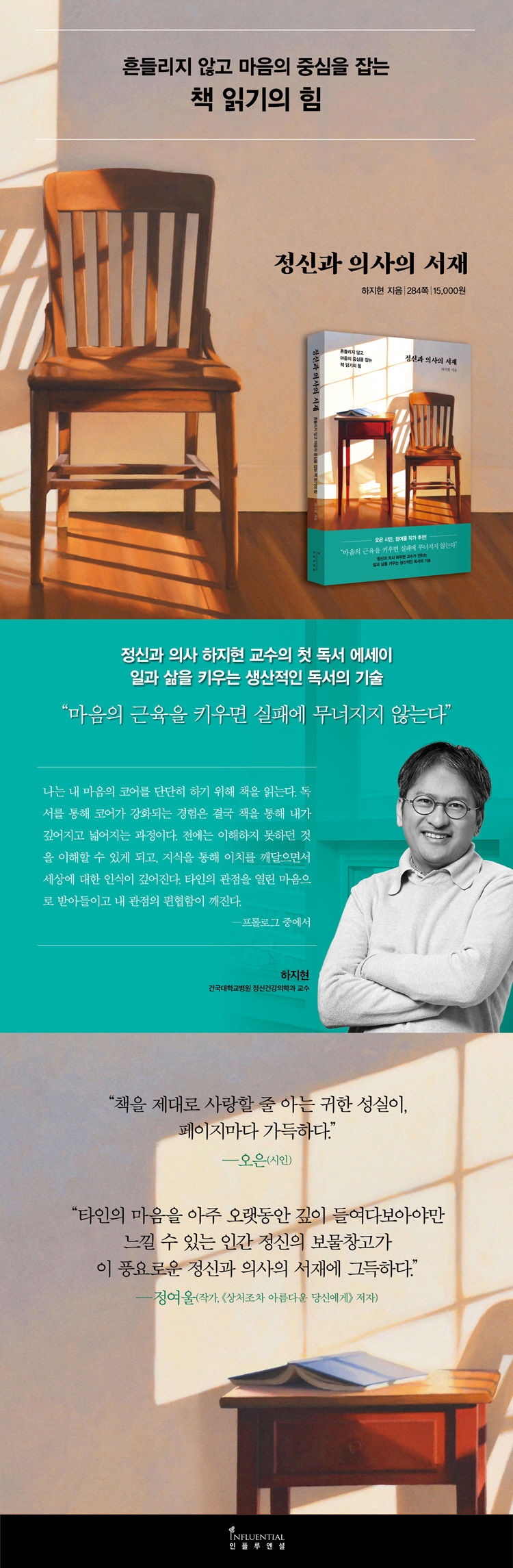 또한 정신과 의사라는 전문 직업인으로서 독서가 중요한 이유에 대해서도 언급한다. 뼈가 부러지거나 얼굴에 상처가 나는 것처럼 증상이 외부적으로 잘 드러나지 않는 정신과적 진료에서 끊임없는 판단과 결정이 필요하고, 그때마다 ‘앎의 경계를 짓는 일’이 요구된다.