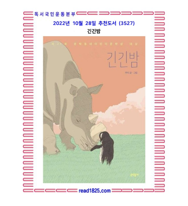 ‘긴긴밤’이라는 세 글자 제목이 어떤 내용일까 궁금했는데 다 읽고 보니 이 제목 안에 등장인물들의 고통과 용기, 협동과 우정 등이 모두 함축되어 있는 것 같다. 코뿔소 노든의 눈망울에 희미하게 비친 펭귄의 모습이 아직도 내 머릿속에 맴돈다._정윤호(5학년, 길음초)