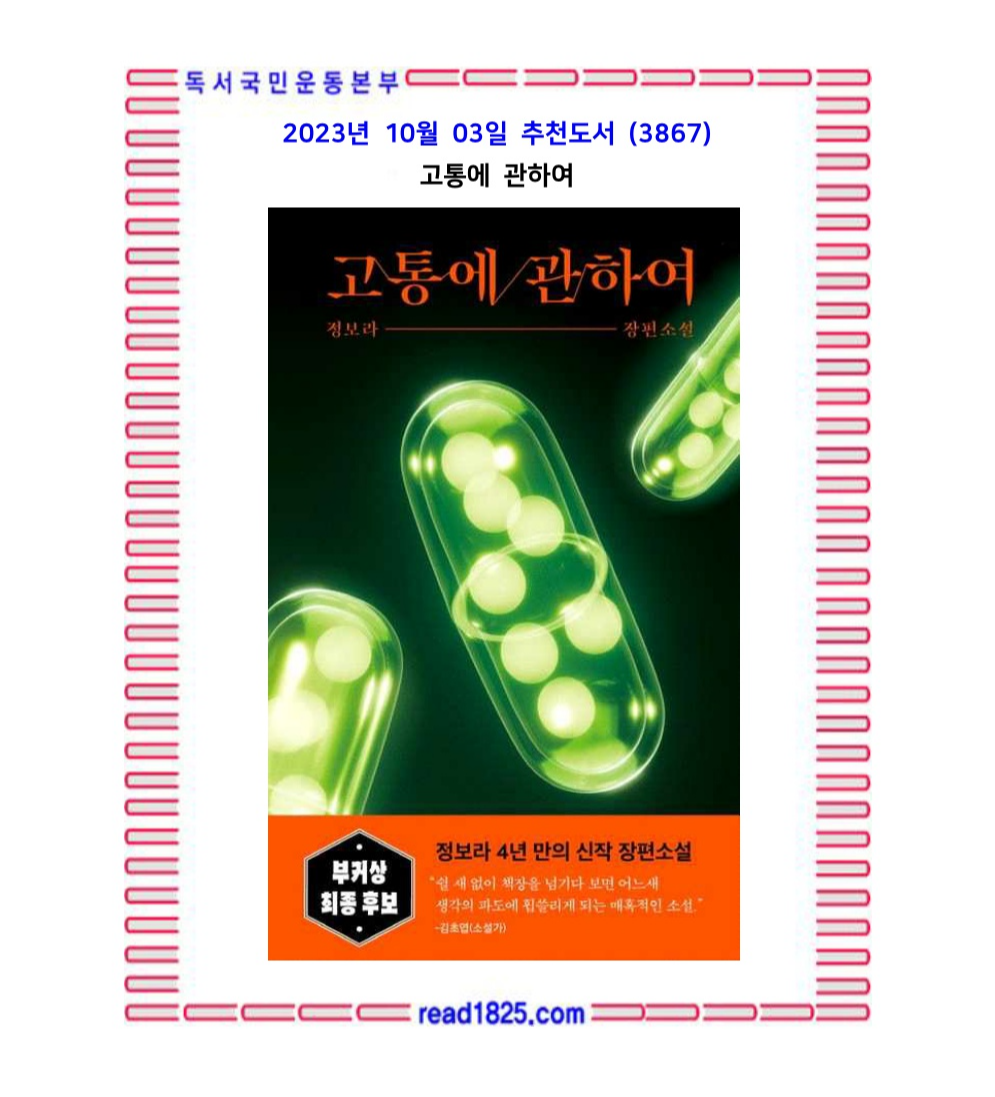 고통의 패러다임을 바꾼 강력한 진통제의 등장이라는 설정에도, 등장인물들이 살면서 마주해야 했던 갖가지 고통은 일상의 우리에게도 몹시 익숙하다. 몸과 정신을 혹독한 환경에 놓아두면서까지 더 나은 곳으로, 더 높은 곳으로 나아가고자 하는 욕구는 지금의 한국을 살아가는 사람들에게 여전히 유효하기 때문이다. 우리는 목표에 도달하기까지 들인 고통의 시간들을 ‘삶의 의미’라 부르며 견디고, 버티고, 참아내 왔다. 이런 ‘정상성’의 비틀린 부분을 매섭게 포착해 온 정보라 작가는 고통의 의미를 의학적, 철학적, 역사적 관점에서 분해하고 재조립해 마침내 하나의 결론으로 내보인다. 몸과 마음에 지독하게 새겨진 고통의 기억, 그 순간들은 과거에 내려놓자고. 우리가 내딛지 못했던 미래로 이제 한 걸음 나아가자고.