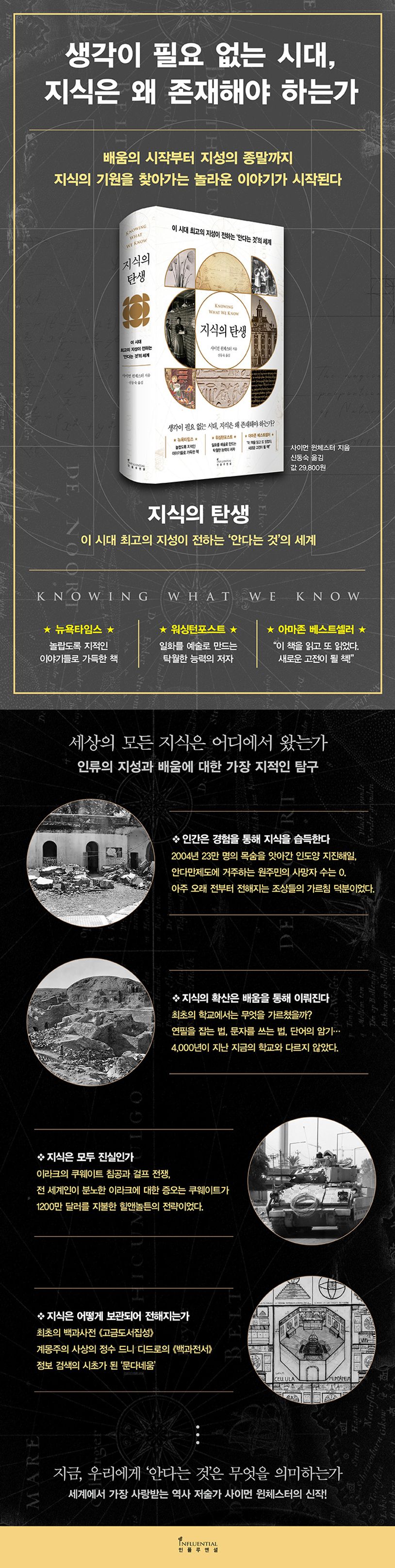 20세기 가장 뜨거운 현장의 목격자였으며, 21세기 변화하는 역사의 증인으로 세계적인 명성을 쌓아온 사이먼 윈체스터는 박식한 입담과 유려한 문체로 우리에게 지식의 정의와 의미, 그에 따른 다채로운 이야기를 전한다. 지식의 가치가 사라져가고 있는 지금, 우리에게 필요한 것은 무엇일까. 그가 던지는 질문을 따라가다 보면 지혜의 회복이라는 궁극적인 해답에 다다를 수 있을 것이다.