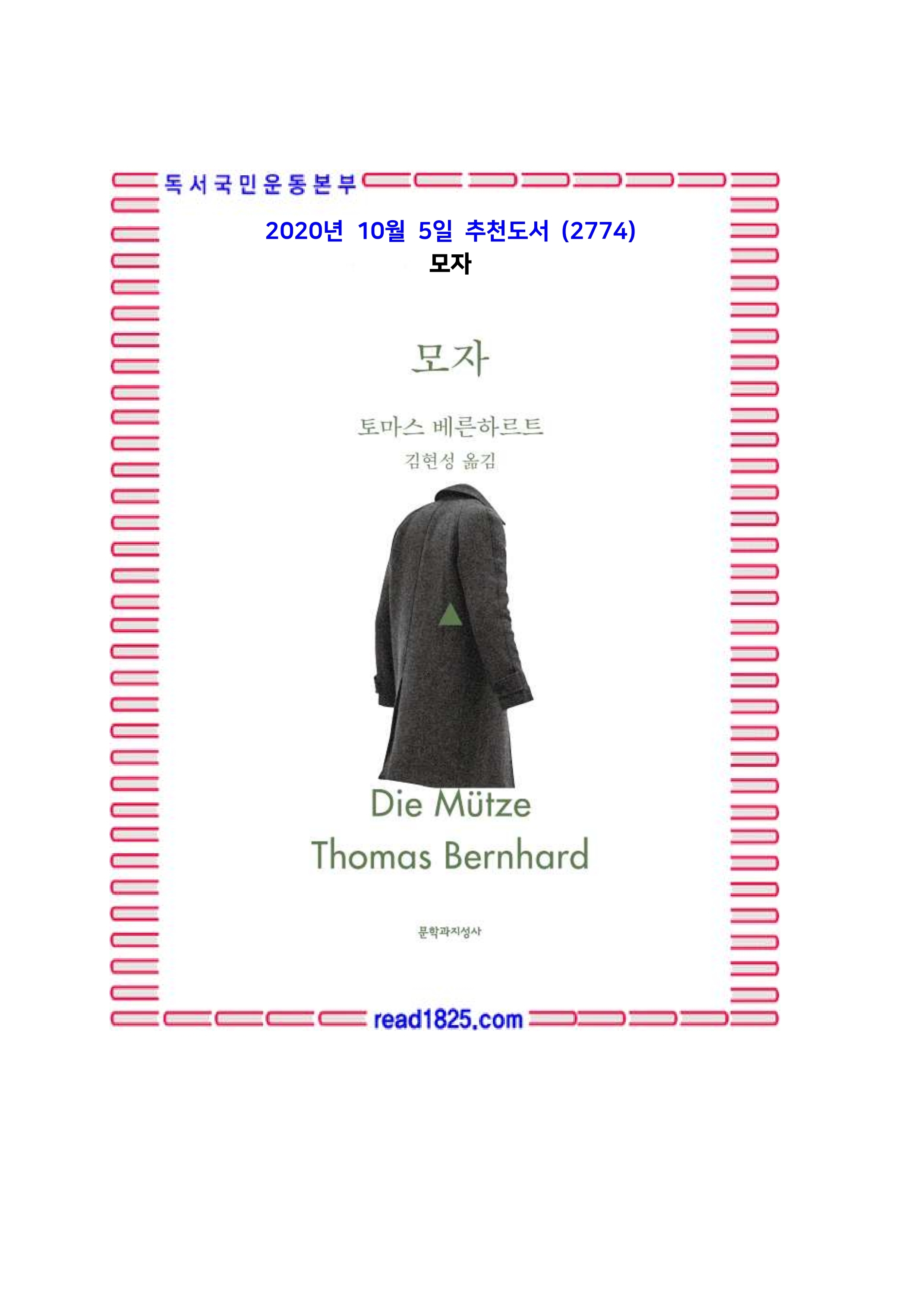 현대 독일어권 문학을 대표하는 거장이자 죽음, 절망, 고통, 파멸의 작가로 우리에게 잘 알려진 토마스 베른하르트의 소설집 『모자』(김현성 옮김)가 새롭게 리뉴얼된 ‘문지 스펙트럼’ 시리즈로 출간되었다. 평범하지 않은 출생과 어머니와의 애증 관계, 고통스러운 가족사로 인해 죄의식과 저주 속에서 불우한 어린 시절을 보낸 베른하르트는 죽음과 파멸, 고독과 절망, 정신착란 등 암울하고 음습한 어둠의 정서를 문학적 상상력으로 생생하게 구현해내며 독창적인 작품 세계를 구축했다. 『모자』는 그의 단편소설 가운데 열 편(「두 명의 교사」 「모자」 「희극입니까? 비극입니까?」 등)을 선별해 묶은 책으로, “한번 접하고 나면 도저히 피할 수 없”는 베른하르트만의 탁월한 작품 세계를 가감 없이 보여준다.