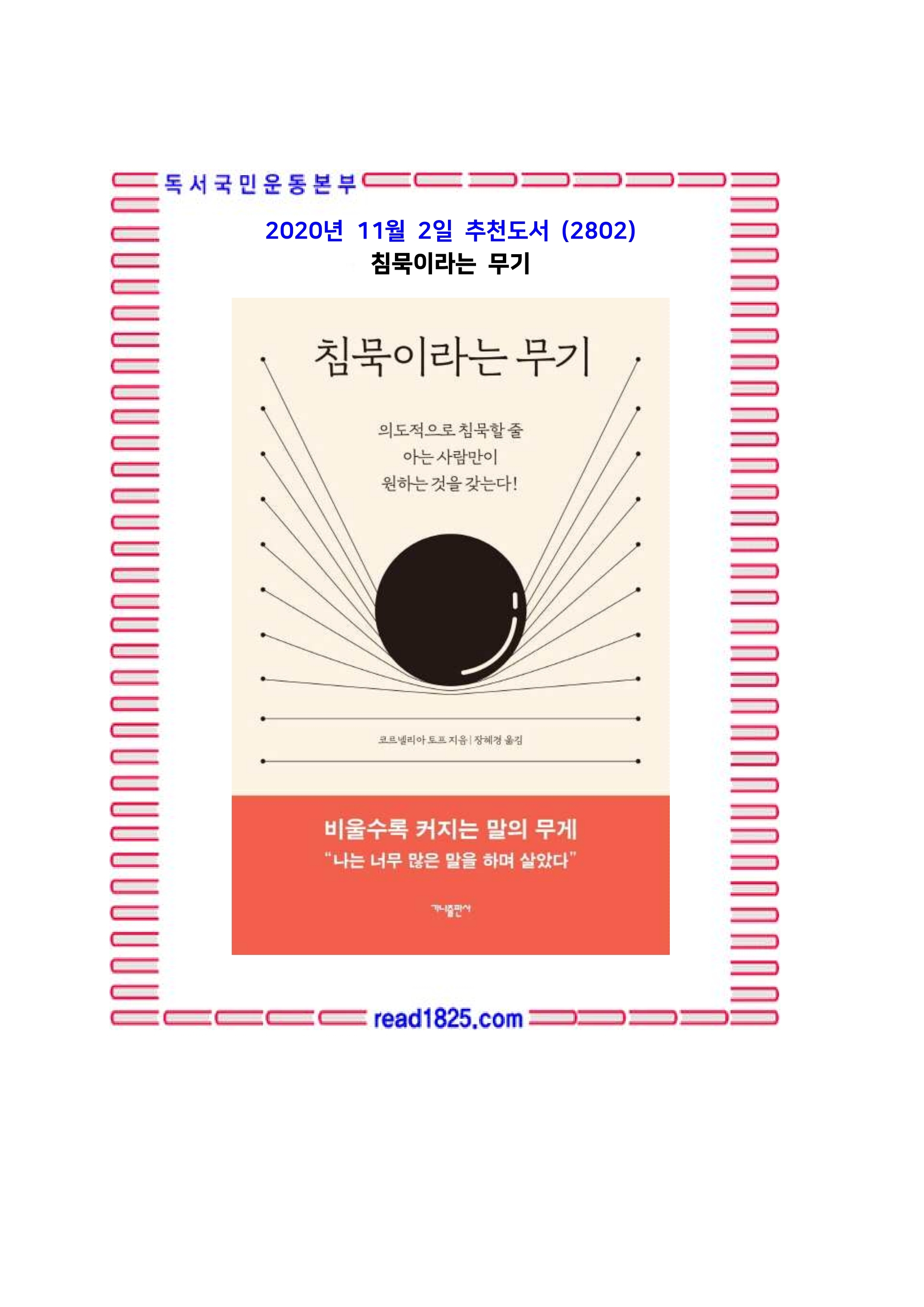 11월의 추천도서(2802) 침묵이라는 무기