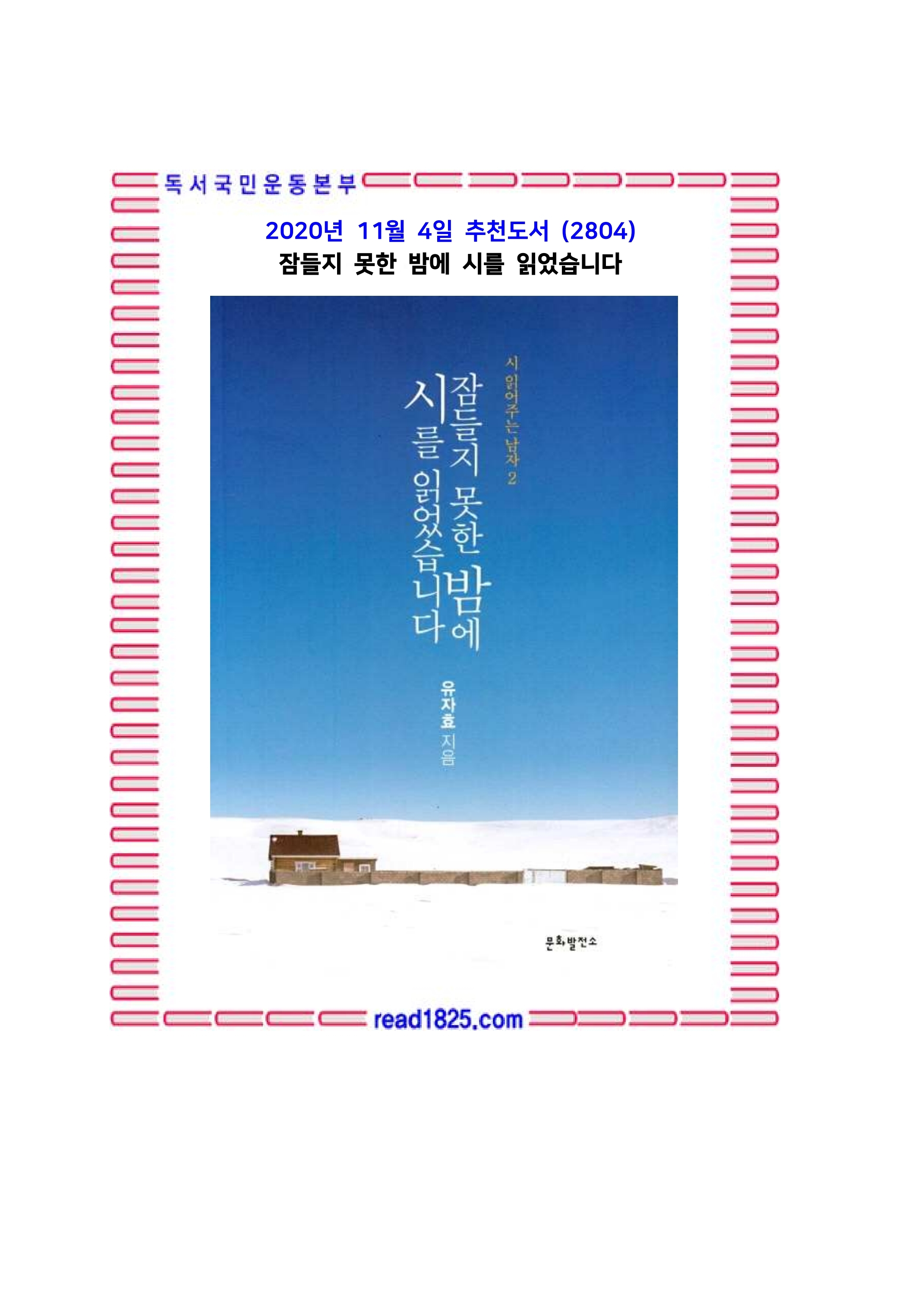11월의 추천도서(2804) 잠들지 못한 밤에 시를 읽었습니다