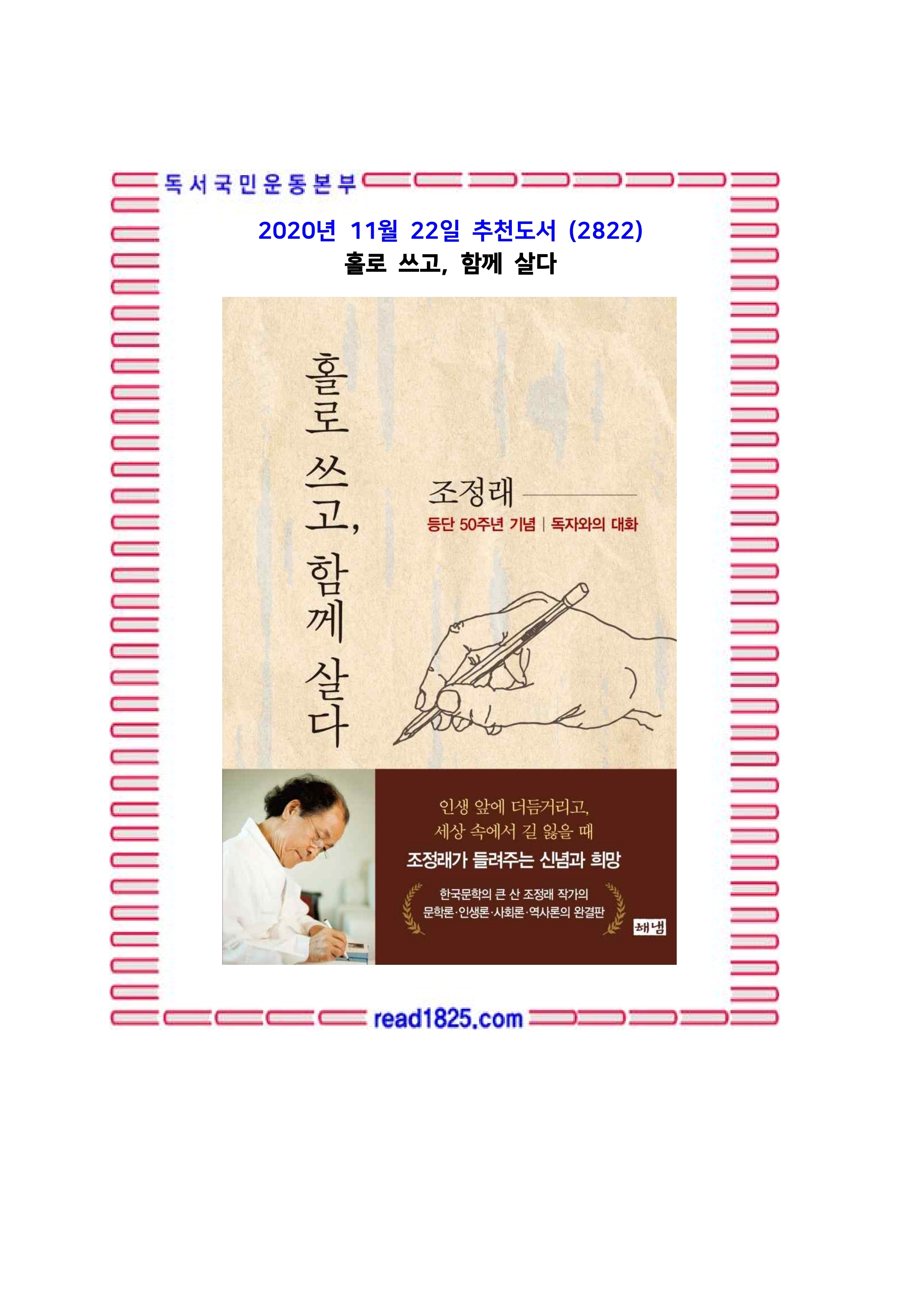 11월의 추천도서(2822) 홀로 쓰고, 함께 살다