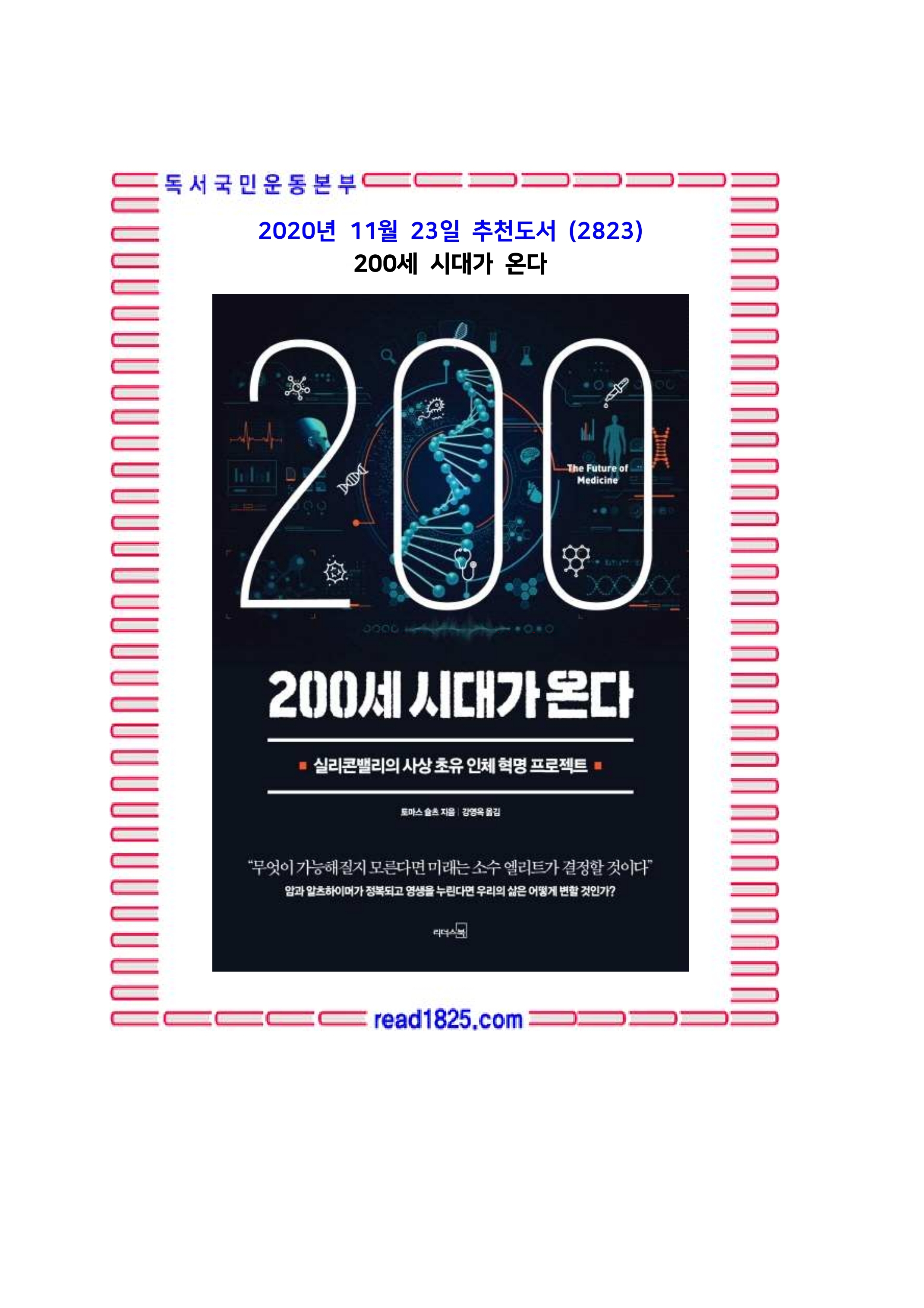 11월의 추천도서(2823) 200세 시대가 온다