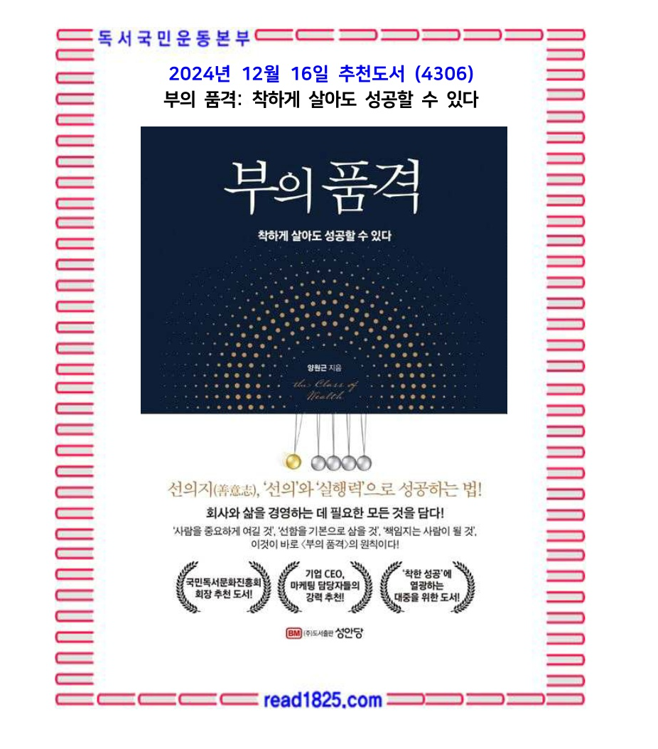 12월의 추천도서 (4306) 부의 품격: 착하게 살아도 성공할 수 있다