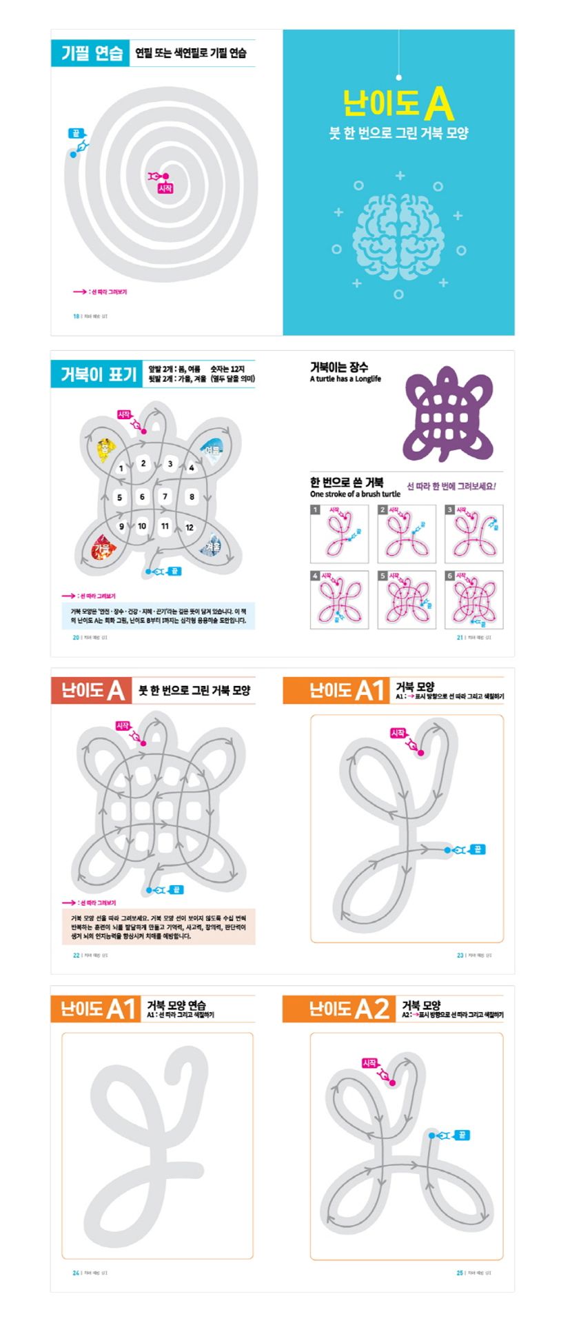 이 책의 가장 큰 장점은 단순함과 반복 속에 내재된 무한한 변화를 담았다는 것입니다. 거북이 일러스트라는 단순해 보이는 구조 속에 천변만화의 조화가 내재해 있습니다. 그리고 그 변화를 따라가다 보면 자연스럽게 우리의 두뇌가 개발됩니다.