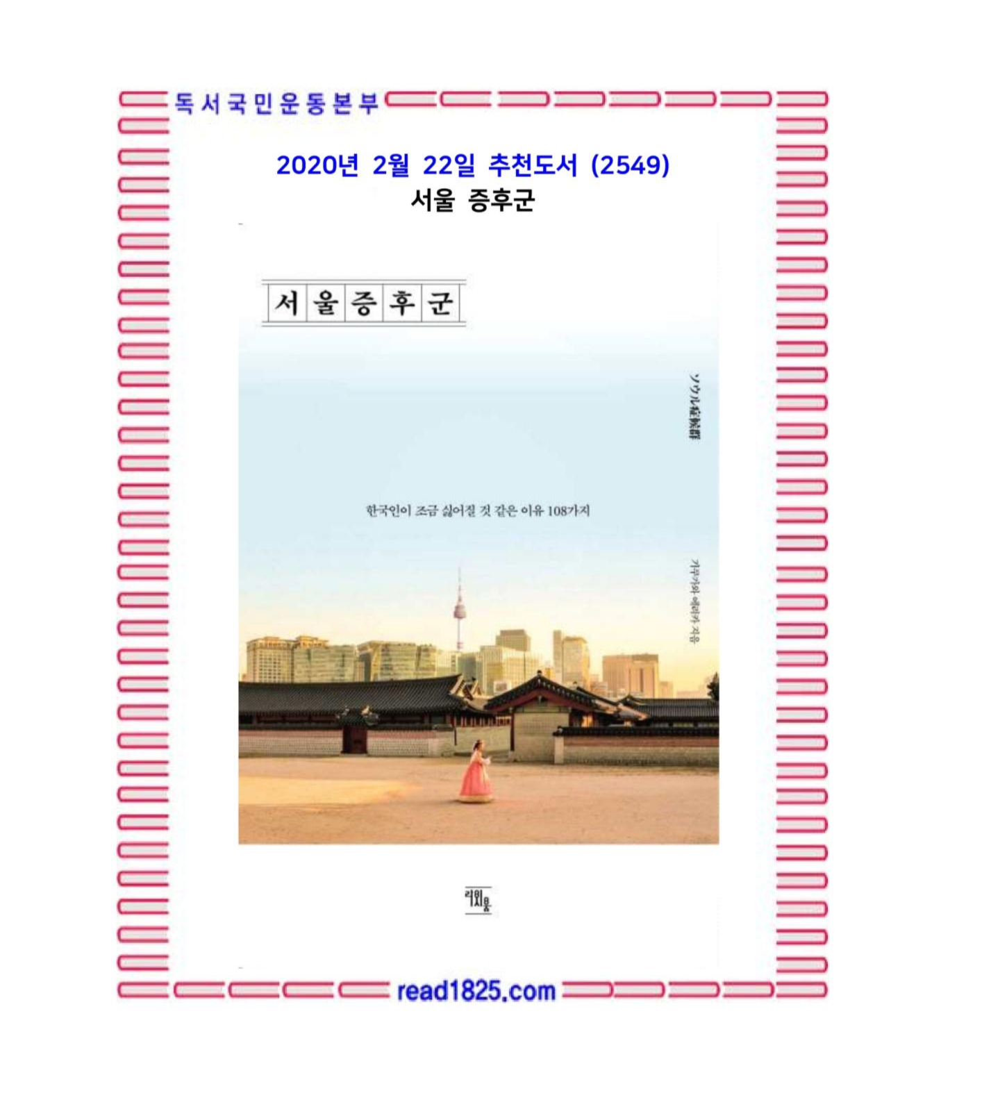 1945년, 일본에 대한 한국의 입장은 반일에서 시작했습니다. 그 후, 지일에서 극일, 승일의 심정으로 달려왔던 한국의 여정은 주지의 사실입니다. 그리고 지금은 탈일본으로 기조가 바뀌고 있습니다. 한일 관계사의 패러다임이 바뀌는 과도기적 시기에 놓여있다고 사람들은 말합니다. 격변하는 한국과 일본의 오늘. 돌변하는 한일관계. 누구도 한 치 앞을 모르는 내일의 양국 관계입니다. 반일, 지일, 극일, 승일을 지나 이제는 바야흐로 탈일본의 시대적 요구에 직면한 한국인에게 서울증후군이라는 유별난 병에 걸린 일본인의 이야기에 귀를 기울여보는 것도 아주 가치 없는 일은 아닐 것입니다. 일본에 호기심 있는 한국인들을 위한 일본과 일본인 입문서로도 손색이 없습니다. 한국과 한국인을 이야기하고 있으면서 그 이면으로 일본과 일본인이 동시에 설명되고 있기 때문입니다. 한국인 이야기인 동시에 일본인 이야기. 이 미묘한 시기에 한 번쯤 읽어 볼 만한 영양가 듬뿍 담긴 책입니다.
