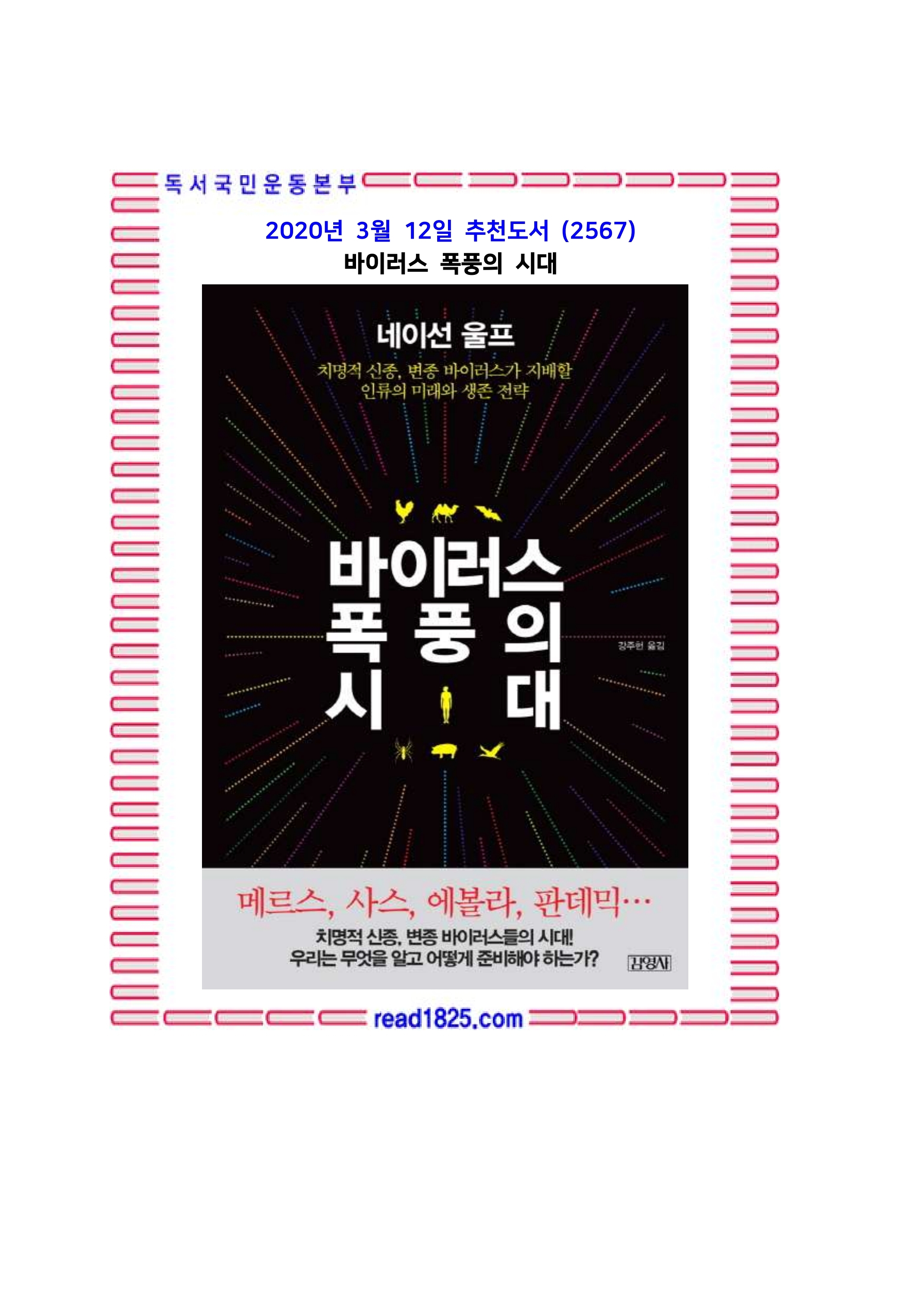 3월의 추천도서(2567) 바이러스 폭풍의 시대