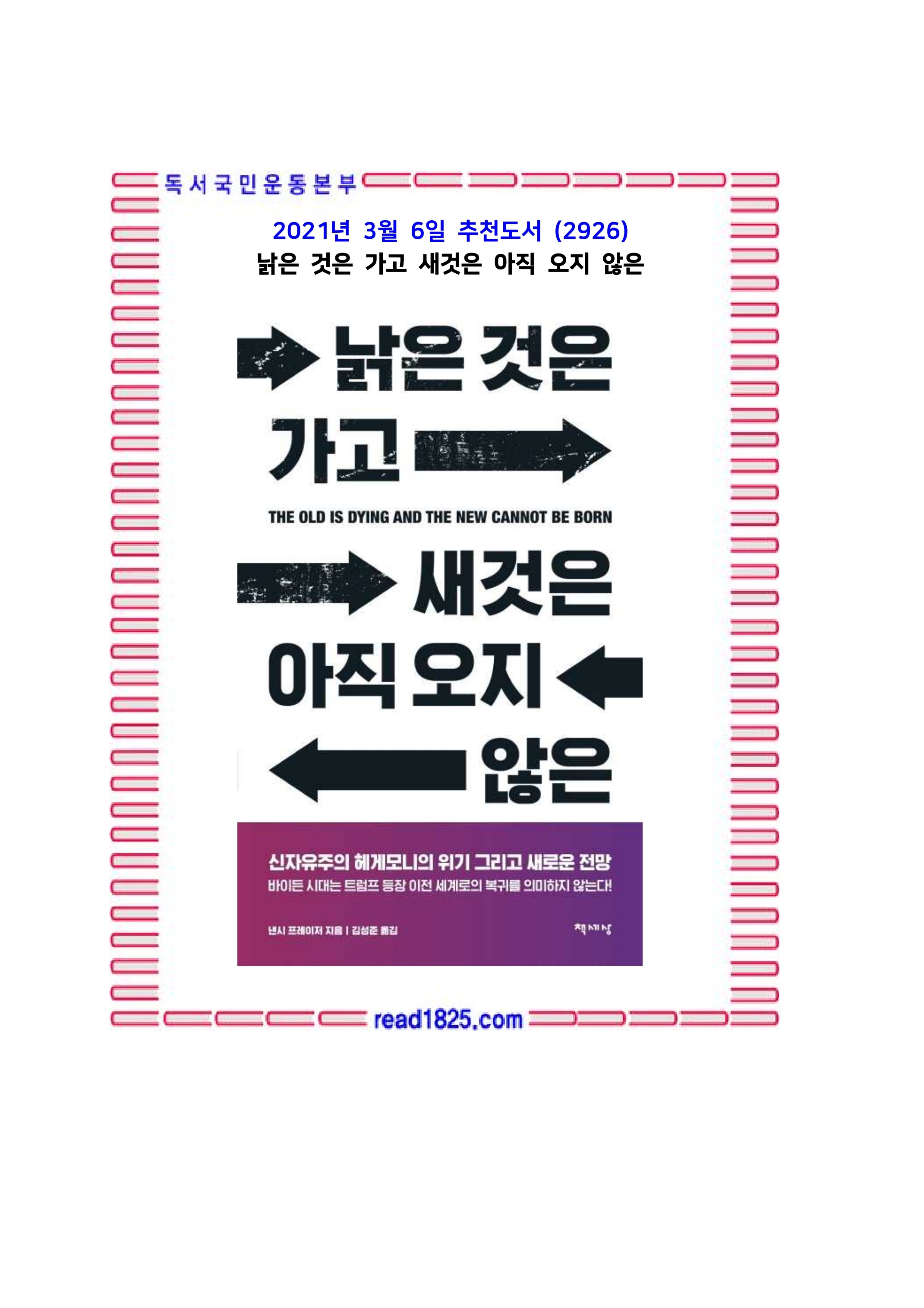 3월의 추천도서(2926) 낡은 것은 가고 새것은 아직 오지 않은