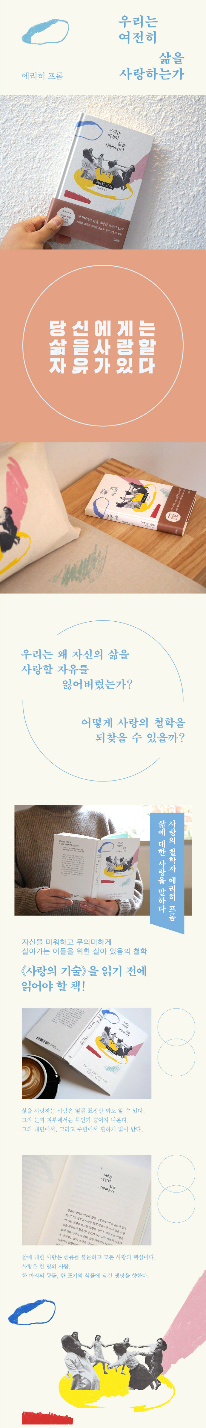 전 세계에서 수백만 부 이상 판매되며 출간된 지 60여 년이 지난 지금도 독자들의 꾸준한 사랑을 받는 스테디셀러이자 현대의 고전 《사랑의 기술》. 명실상부한 사랑의 철학자인 그가 이제 《사랑의 기술》이 말하는 관계의 사랑을 넘어, 보다 더 근본적이고 모든 사랑의 핵심인 ‘삶에 대한 사랑’을 말한다. 자신을 미워하며 공허한 삶을 살아가는 현대인의 심리를 분석하고 삶을 사랑할 자유에 대해 통찰한 신간 《우리는 여전히 삶을 사랑하는가》(원제: Lieben wir das Leben noch?)가 출간되었다. 전 세계 최초로 공개되는 미발표 작품으로, 에리히 프롬의 마지막 8년을 함께한 조교이자 정신과 전문의인 라이너 풍크 박사가 유작을 엮었다.