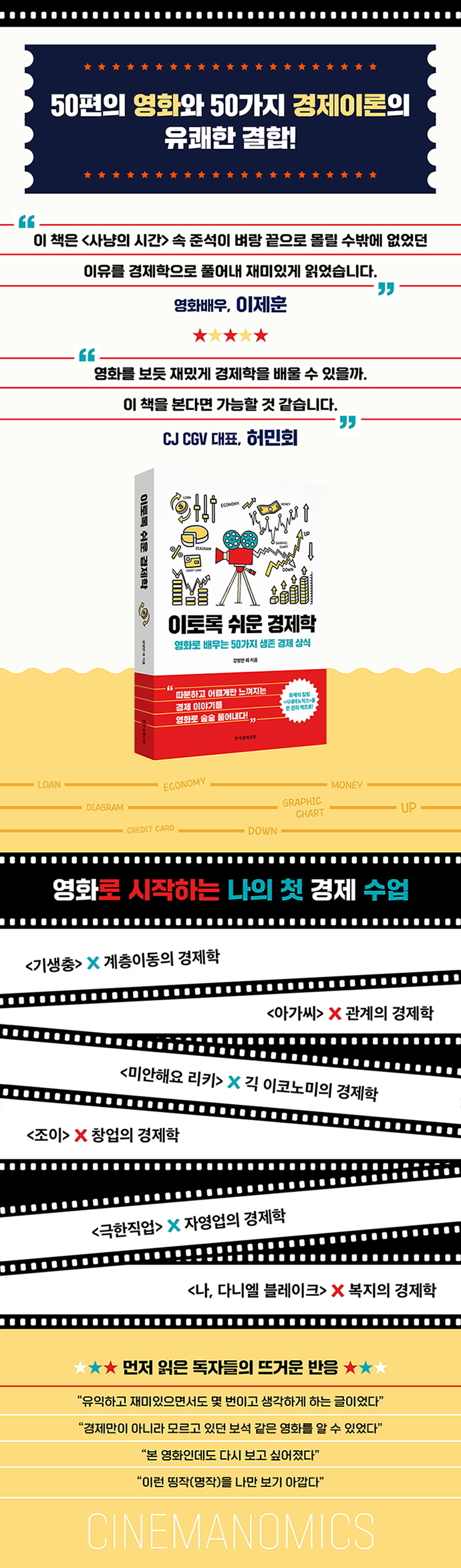 《이토록 쉬운 경제학》은 매주 토요일 〈한국경제신문〉 지면에 실렸던 ‘시네마노믹스’ 코너의 글들을 한 권의 책으로 묶은 것이다. 세계적으로 인기를 끈 대작부터 잘 알려지지 않은 독립영화까지 다양한 작품 50편을 아울렀다.