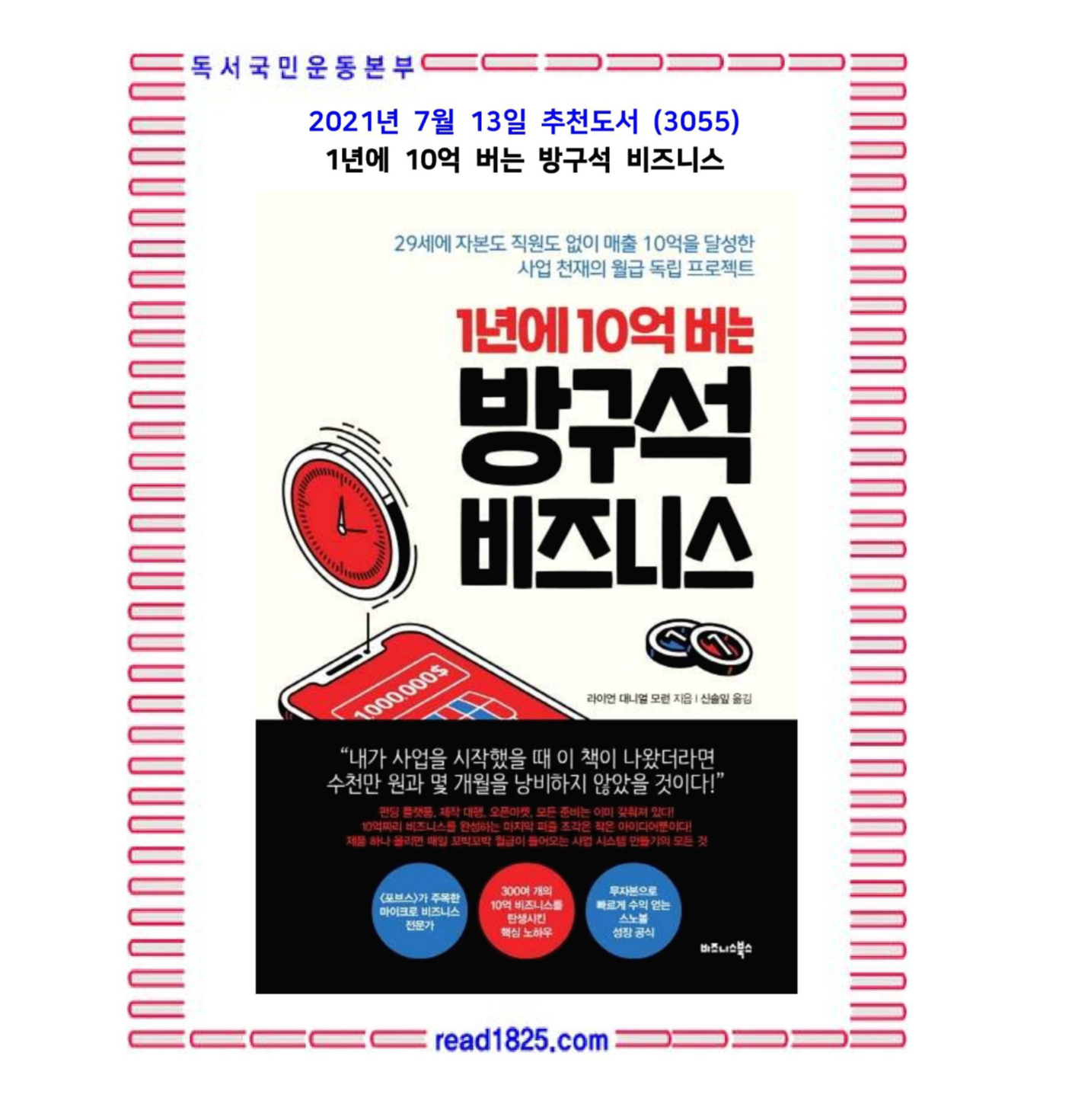 7월의 추천도서 (3055) 1년에 10억 버는 방구석 비즈니스