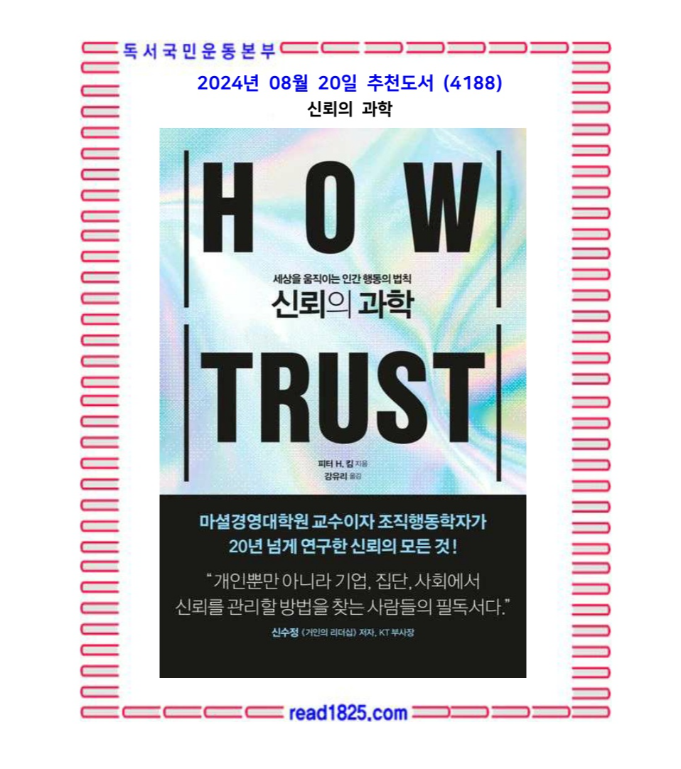“개인뿐만 아니라 기업, 집단, 사회에서 신뢰를 관리할 방법을 찾는 사람들의 필독서다”