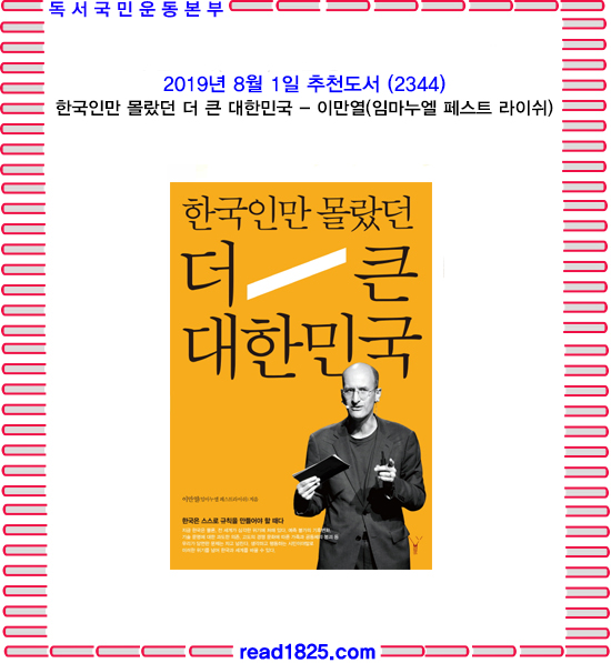 8월의 추천도서(2344) 한국인만 몰랐던 더 큰 대한민국 - 이만열(임마누엘 페스트 라이쉬)