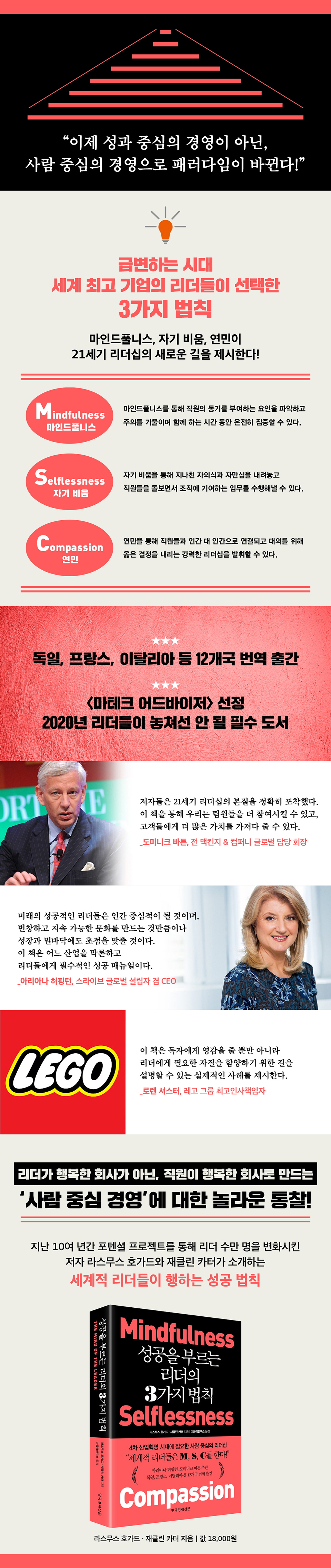 리더들이 마인드풀니스와 자기 비움, 연민으로 조직을 이끌어가게 되면 리더이기 이전에 한 사람으로서 더 성숙해지며, 조직 내 직급과 직책을 떠나서 한 개인으로서 자아를 돌아보게 된다. 그리고 리더와 직원 사이를 나누고 있는 사회적 지위의 거리를 점점 좁힌다. 마인드풀니스와 자기 비움, 연민을 통해 리더들은 직원을 수단으로 보지 않고 살아 있는 독립적 인간으로 보는 인간 중심의 조직 문화를 만들어갈 수 있다. ‘사람 우선’ 문화를 육성하는 것은 리더의 마음에서 시작된다. 리더는 사람들과 함께 행동하고 교류하며 집중해야 한다. 리더가 관심 어린 눈으로 지켜보고 있고 이야기를 경청하며 소중하게 대한다고 직원들이 느낄 수 있어야 한다. 그러기 위해서는 마인드풀니스로 자기 비움의 태도를 배양하고 연민의 심성을 길러야 한다. 그런 과정을 통해 업무 몰입과 성취 및 의미 실현에 필수적인 역량을 기른다면, 사업은 크게 성공할 것이다. 그동안 수많은 세계적인 기업의 리더들이 먼저 MSC 리더십 훈련을 받고, 자신과 타인을 리드하는 방식을 완전히 바꾸었다. 독자들은 세상이 변하는 새로운 흐름을 맞이하고 있다. 그 과정을 돕는 데 이 책이 큰 도움이 될 것이다.