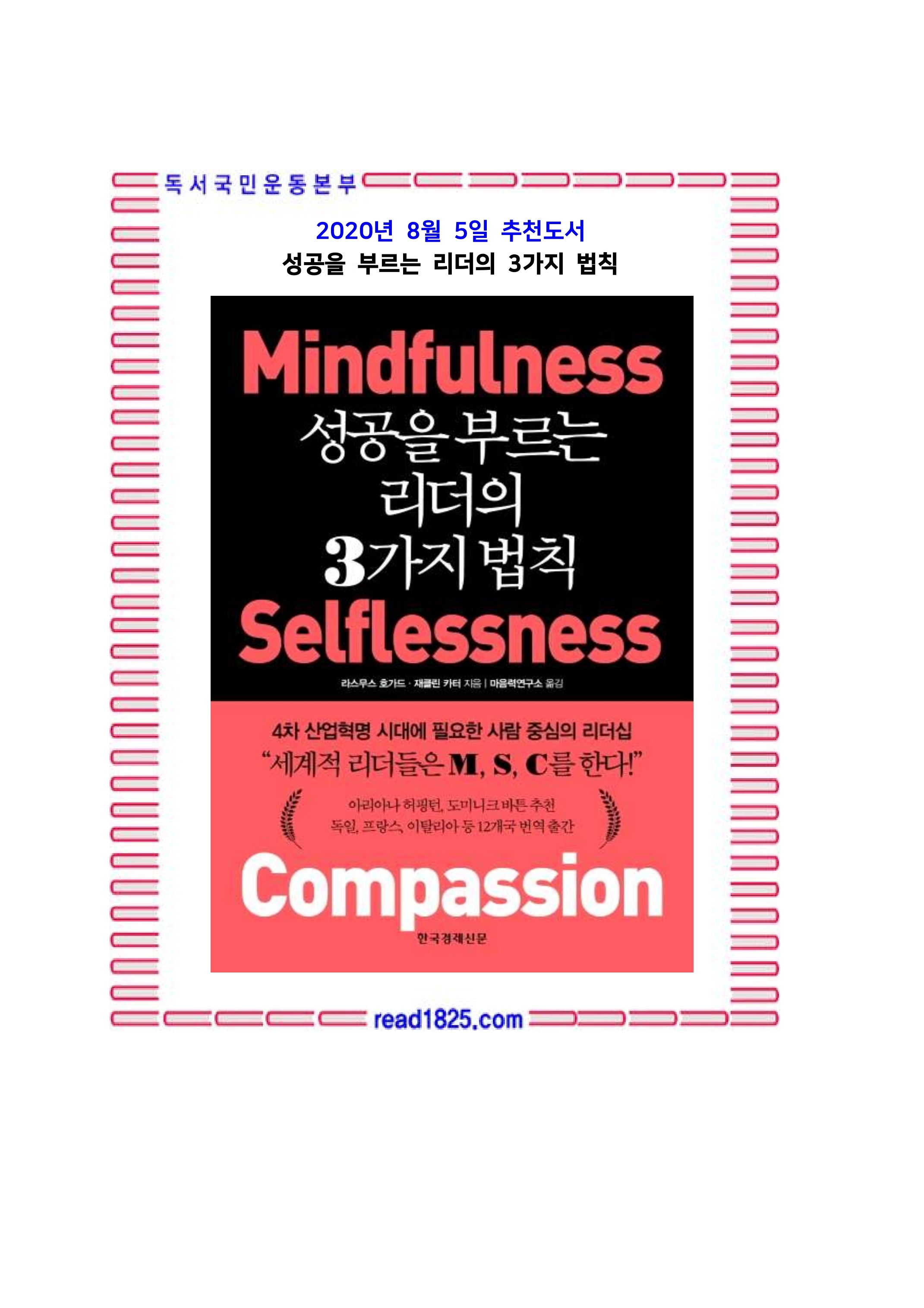 8월의 추천도서(2713) 성공을 부르는 리더의 3가지 법칙