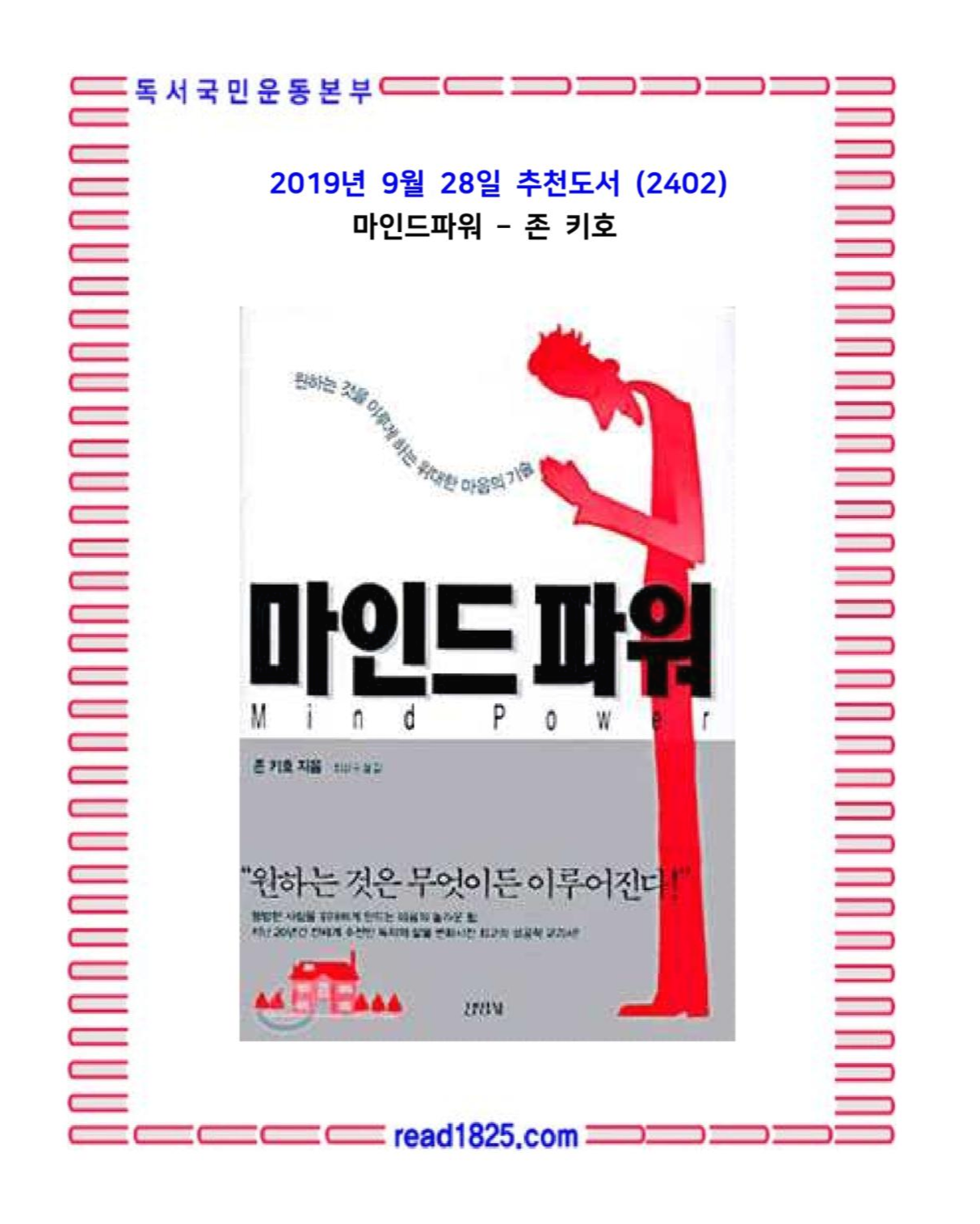 9월의 추천도서 (2402) 마인드파워 - 존 키호