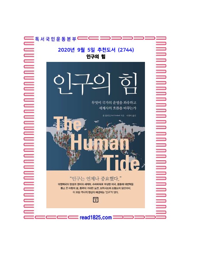 인구 물결이 없었다면 역사적 사건 가운데 상당수는 일어나지 않았을 것이다. 물론 이 모든 것은 역사적 가정에 불과하지만 19세기 인구 폭발이 없었다면 영국이 호주를 비롯하여 세계 곳곳의 광활한 영토에 식민지를 세울 수 없었을 테고 그에 따라 영어의 통용이라든가 자유무역의 일반화 같은 ‘세계화’ 현상이 출현하지 않았을 것이다. 또한 20세기 초 러시아의 영아 사망률이 크게 하락하지 않았다면 히틀러의 군대가 끝도 없이 밀려드는 러시아 군과 맞서 싸우다가 패배하는 일 없이 1941년에 모스크바를 점령하고도 남았을 것이다. 미국이 해마다 수백만 명씩 이민자들을 끌어들이지 못하고 1950년대 이후에 인구를 2배로 늘리지 못했다면 이미 중국에게 경제적으로 잠식당했을지도 모른다. 일본이 20세기에 접어들면서 반세기 넘게 출생률 감소를 경험하지 않았다면 25년씩이나 장기 침체를 겪는 일도 없었을 것이다. 시리아의 평균 연령이 예멘이 아니라 스위스와 비슷했다면 내전으로 무너지지 않았을 가능성이 크며, 레바논은 지난 40년 동안 급속도로 인구 고령화를 겪지 않았더라면 내전에 빠져들었을 것이다. -31쪽